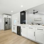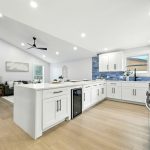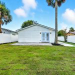 This fully renovated 4-bedroom, 2-bath home blends modern elegance with beachside charm—just 4.5 blocks from the ocean. The chef’s kitchen is a showstopper, featuring white shaker cabinets, premium white quartz counters, a bold black hood, a Kohler undermount sink, blue tile backsplash, a wine cooler, and LG stainless steel appliances with an induction cooktop. Wide-plank luxury vinyl flooring flows throughout, complemented by recessed lighting, stylish fixtures, and a shiplap fireplace wall with an electric fireplace. The primary bedroom includes a built-in closet organizer and barn doors, while the guest bath showcases marble flooring with all-porcelain fluted tile walls, and the second bath features wall tile paired with shiplap. Brand new windows and doors, including French doors with built-in blinds in the back bedroom, fill the home with natural light, while new siding and lush zoysia grass enhance curb appeal. Walk-in closets provide ample storage, and every major system has been replacedincluding the roof, HVAC, electrical, plumbing, and tankless water heaterensuring peace of mind for years to come. Outside, a paver patio and fully fenced backyard with a durable vinyl fence create the perfect space for entertaining or relaxing in privacy, all on a 50′ x 125′ lot, making this beachside living at its finest. *Option to purchase the Seller’s 6-seater 2024 D5 Evolution Golf Cart.